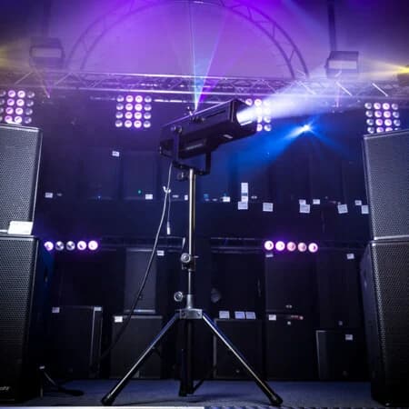 Si vous êtes à la recherche d’une poursuite, cette Followspot 120ST proposée par Chauvet DJ est un excellent choix. En effet, elle vous permet de suivre les mouvements d’un artiste sur scène de manière précise grâce à la LED de 120 watts. Cette dernière fournit un faisceau puissant et focalisé, et ce à une très longue distance. Le montage et le démontage de la Followspot 120ST se fait en un rien de temps grâce au trépied inclus. Vous pouvez contrôler la poursuite manuellement ou via DMX. Notez enfin que le diamètre du faisceau est réglable et que le projecteur spot fonctionne de façon silencieuse. Idéal pour vos événements de type spectacle et théâtre !